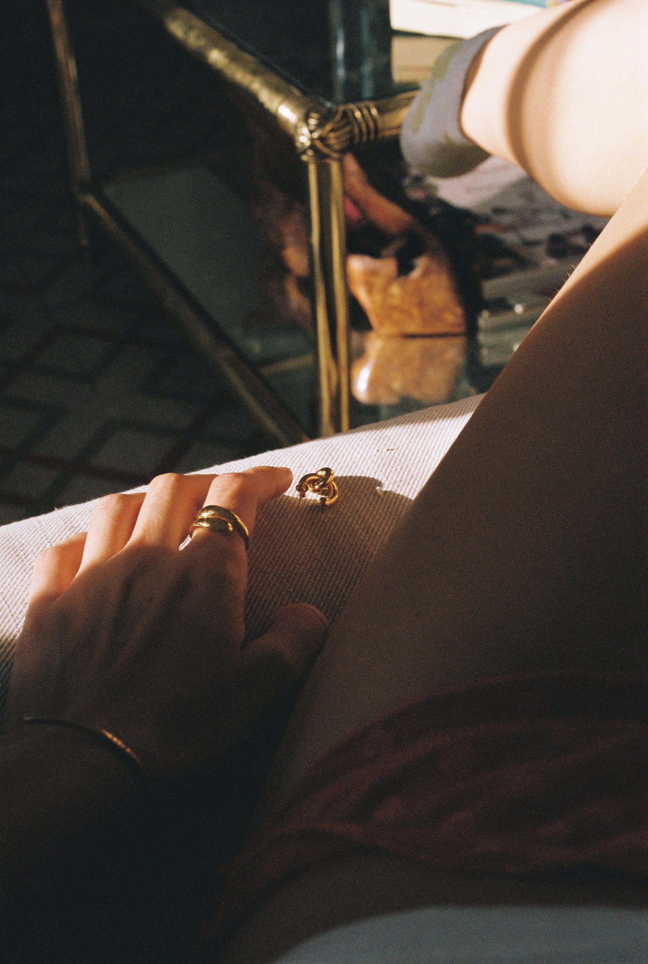A bangle my in-laws bought for me when they met me with the letter "A". And also a gold bracelet someone gave me as a present for my communion when I was 10. It stayed in a drawer for years and I found it some years ago and haven't removed it since. It has my name "Ariadna" written on it and it connects me with the 10 year old Ari.