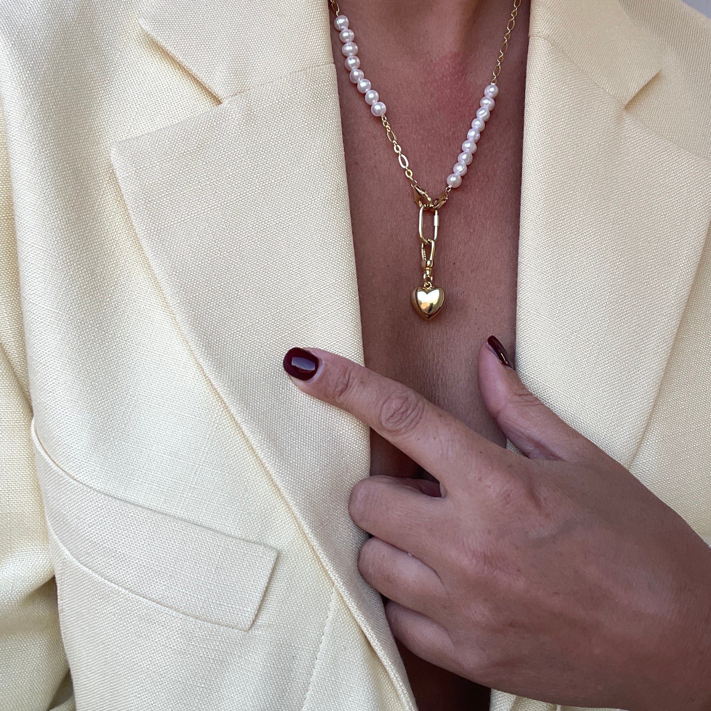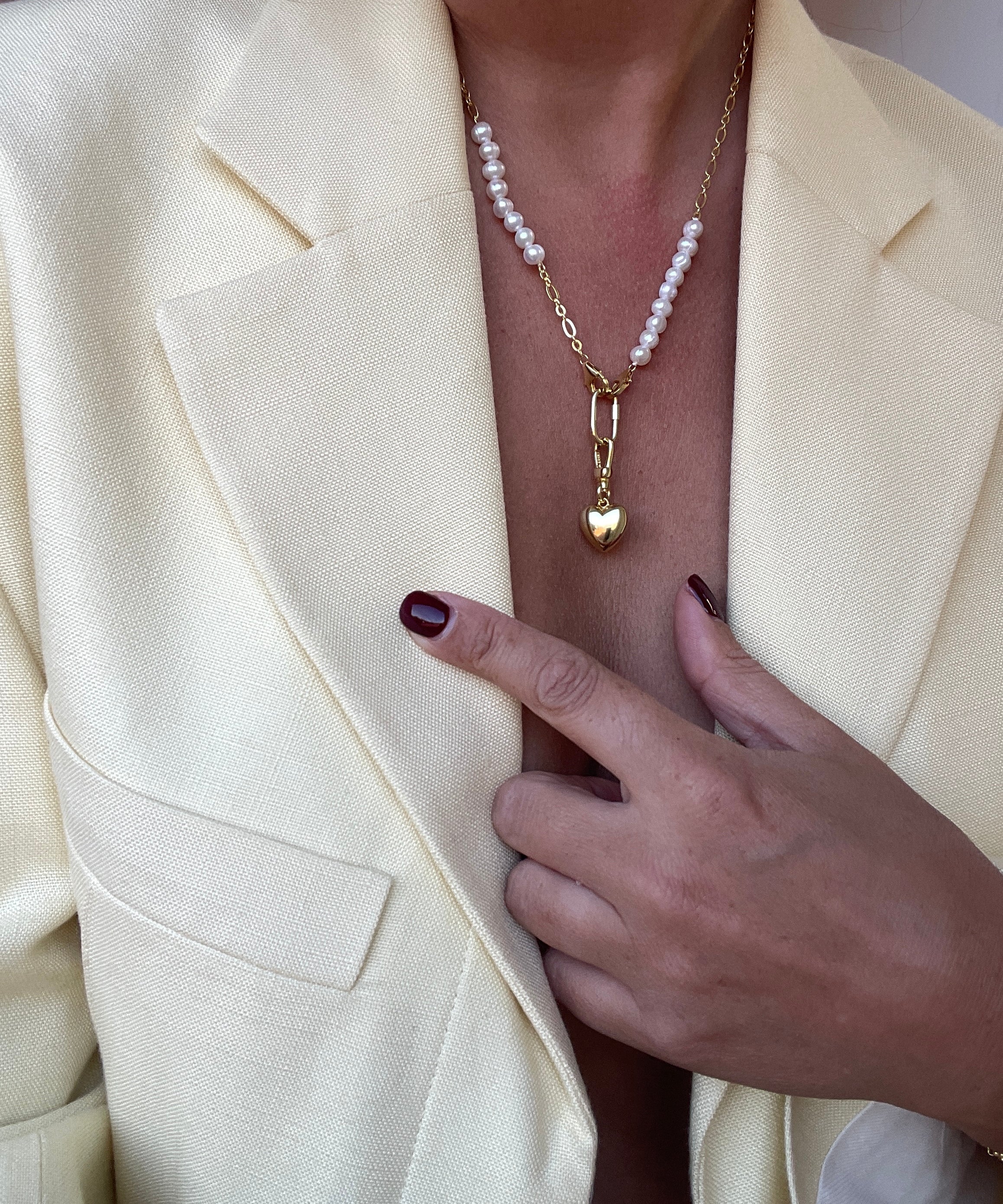 PUFF HEART NECKLACE PEARL