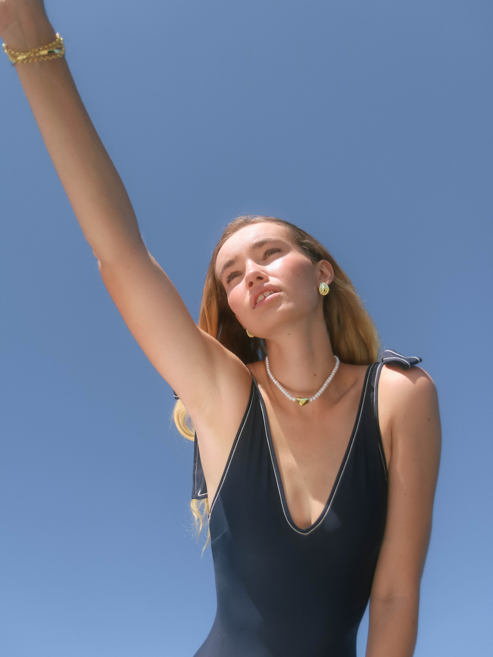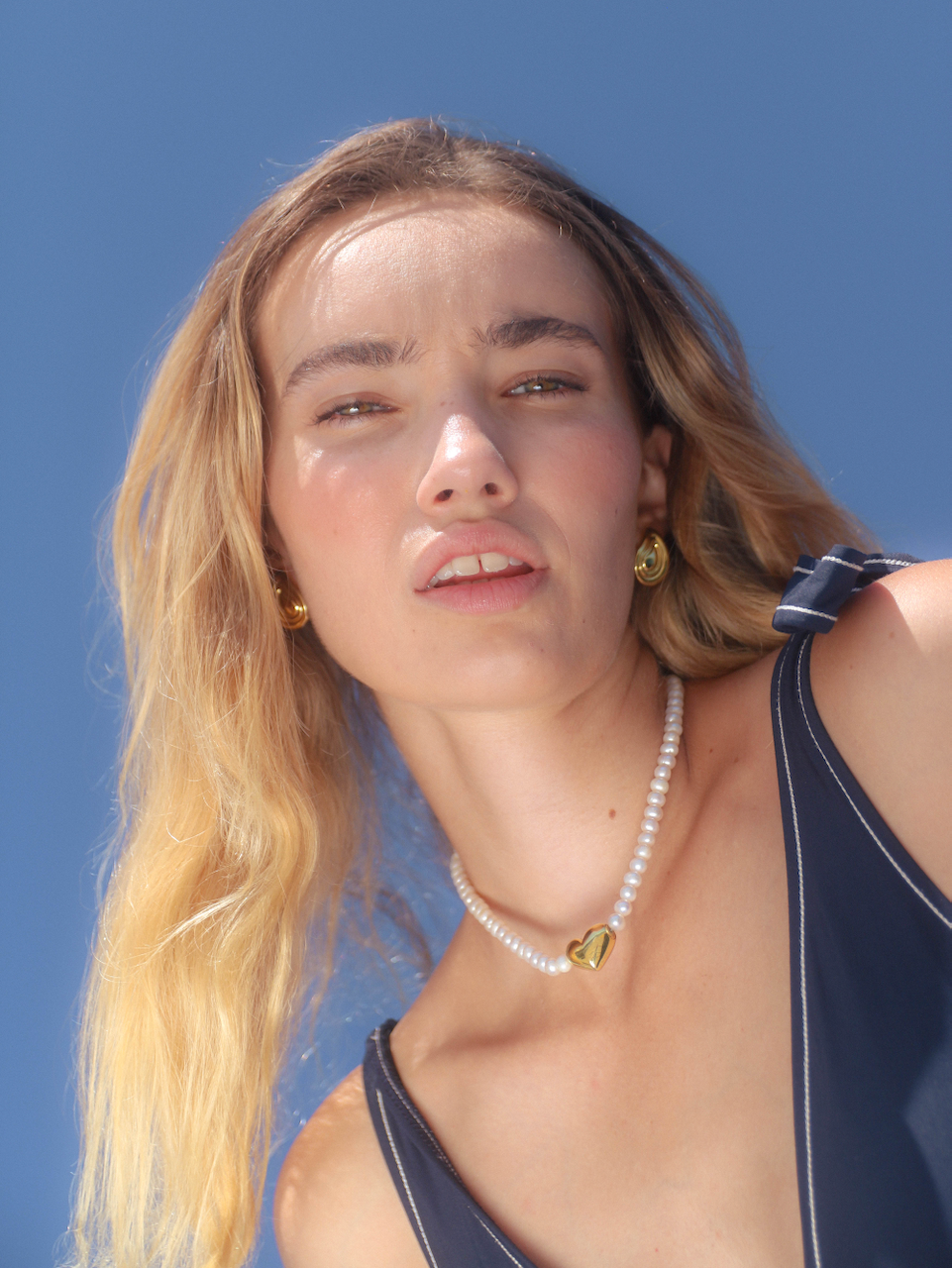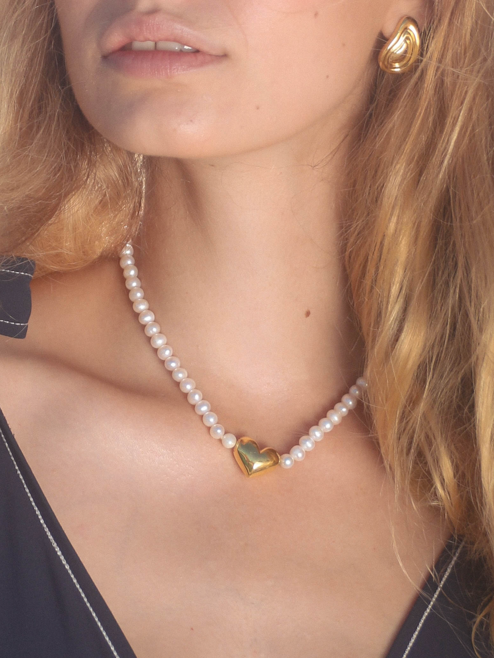A summer essential, the Anouk Pearl Heart Necklace is an elevated choker that brings together classic romance and contemporary charm. A strand of lustrous freshwater pearls meets a magnetic heart pendant. The smooth, sculptural heart serves as a modern symbol of love, while the pearls add timeless grace and femininity. Whether layered or worn alone, the Anouk is a statement of sentiment and sophistication.
