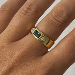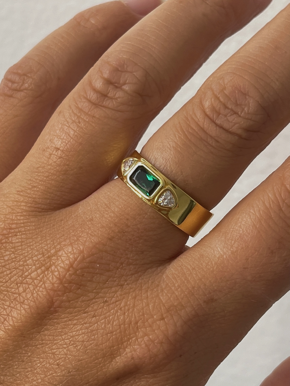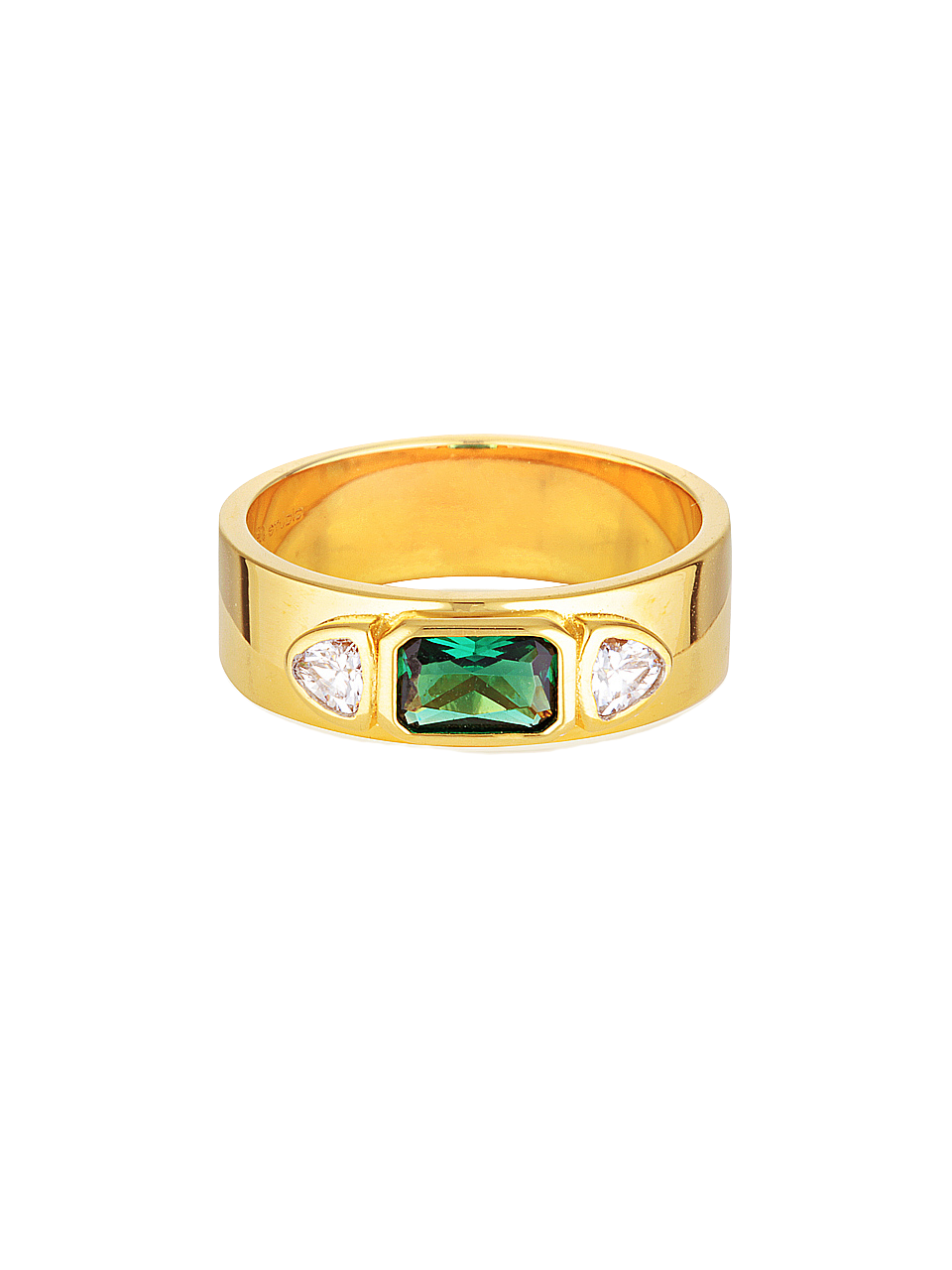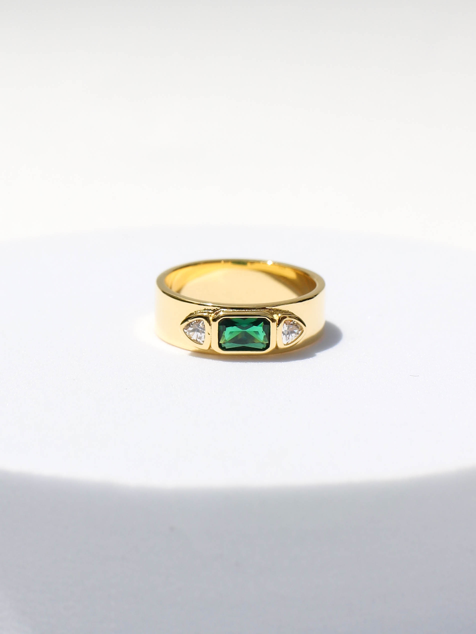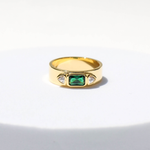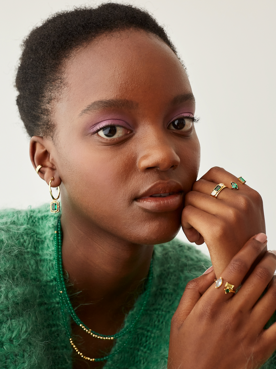 Featuring a statement emerald gemstone set between two white crystals, the Arabella is a focal piece like no other.