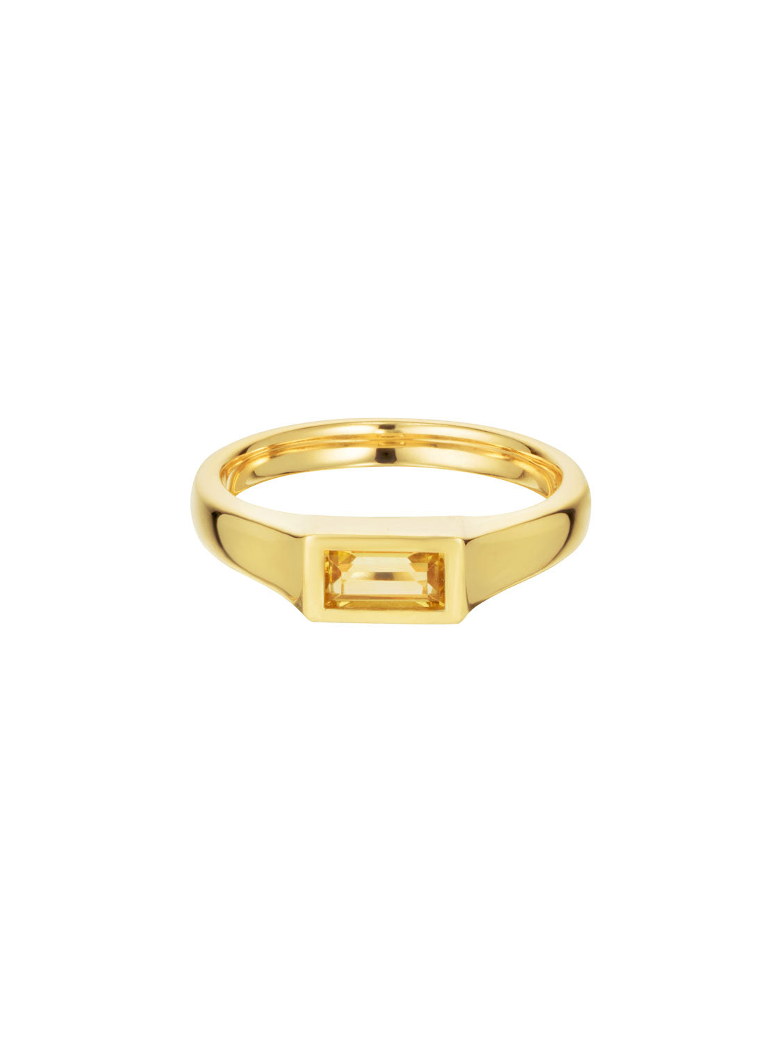 Minimalist yet radiant, the Avery Ring by Avant Studio is a modern classic designed for effortless everyday wear. Handcrafted in solid 14K yellow gold, the piece features a sleek baguette-cut citrine gemstone, bezel set for a clean, contemporary finish.