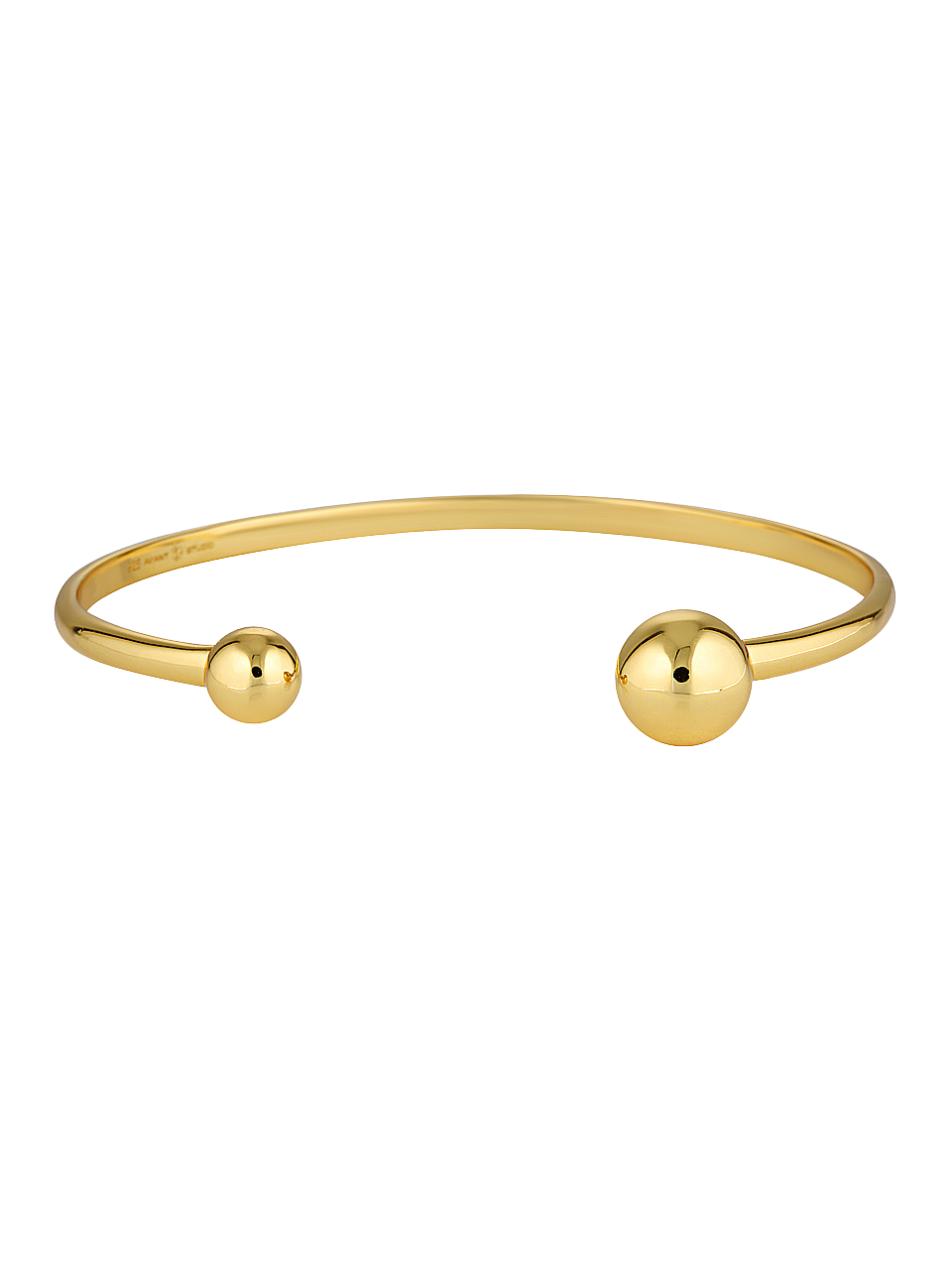 Our Elodie Cuff is a classic plain gold band capped off with two asymmetric gold balls. Easy to layer up with other arm candy or leave solo.