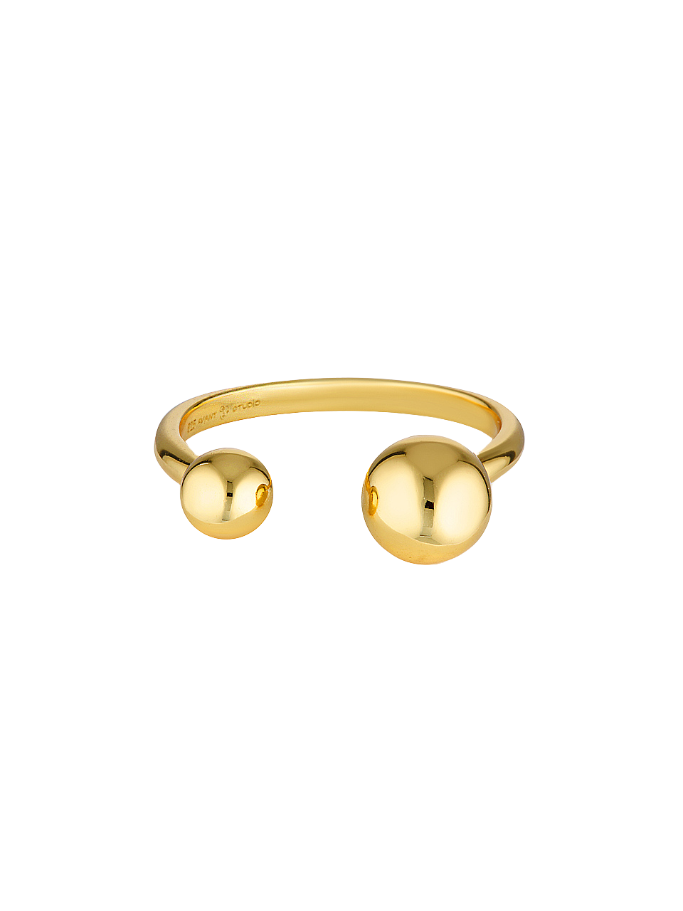 The Elodie Ring is a beautifully simple band measuring 2mm wide finished with two mismatching gold balls.