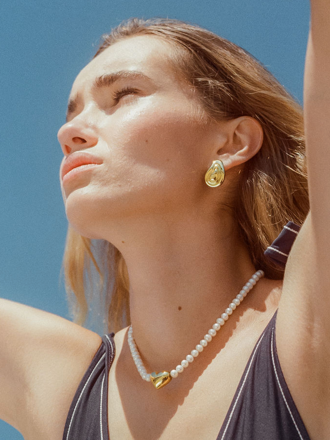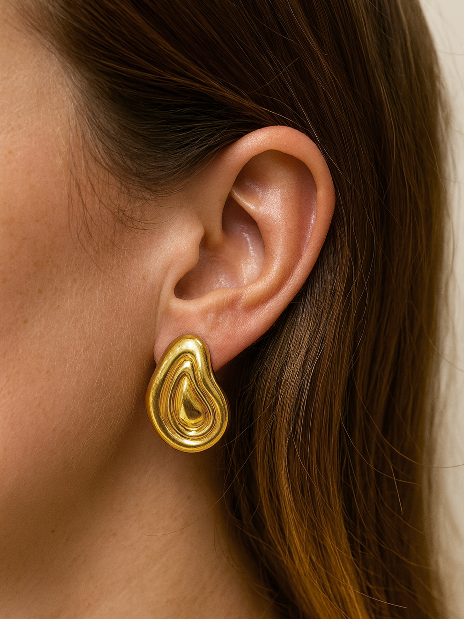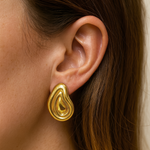 Bold and sculptural, the Elsa Earrings embrace fluid form and understated sophistication. Crafted in 18k electroplated gold on sterling silver, their organic, ripple-like contours evoke the natural flow of molten metal — a study in movement and modern artistry. The smooth, mirror-finish surface captures light beautifully, adding depth and dimension to the design. Striking yet minimal, the Elsa Earrings are a statement of refined confidence, perfect for both day-to-night wear.