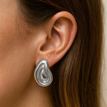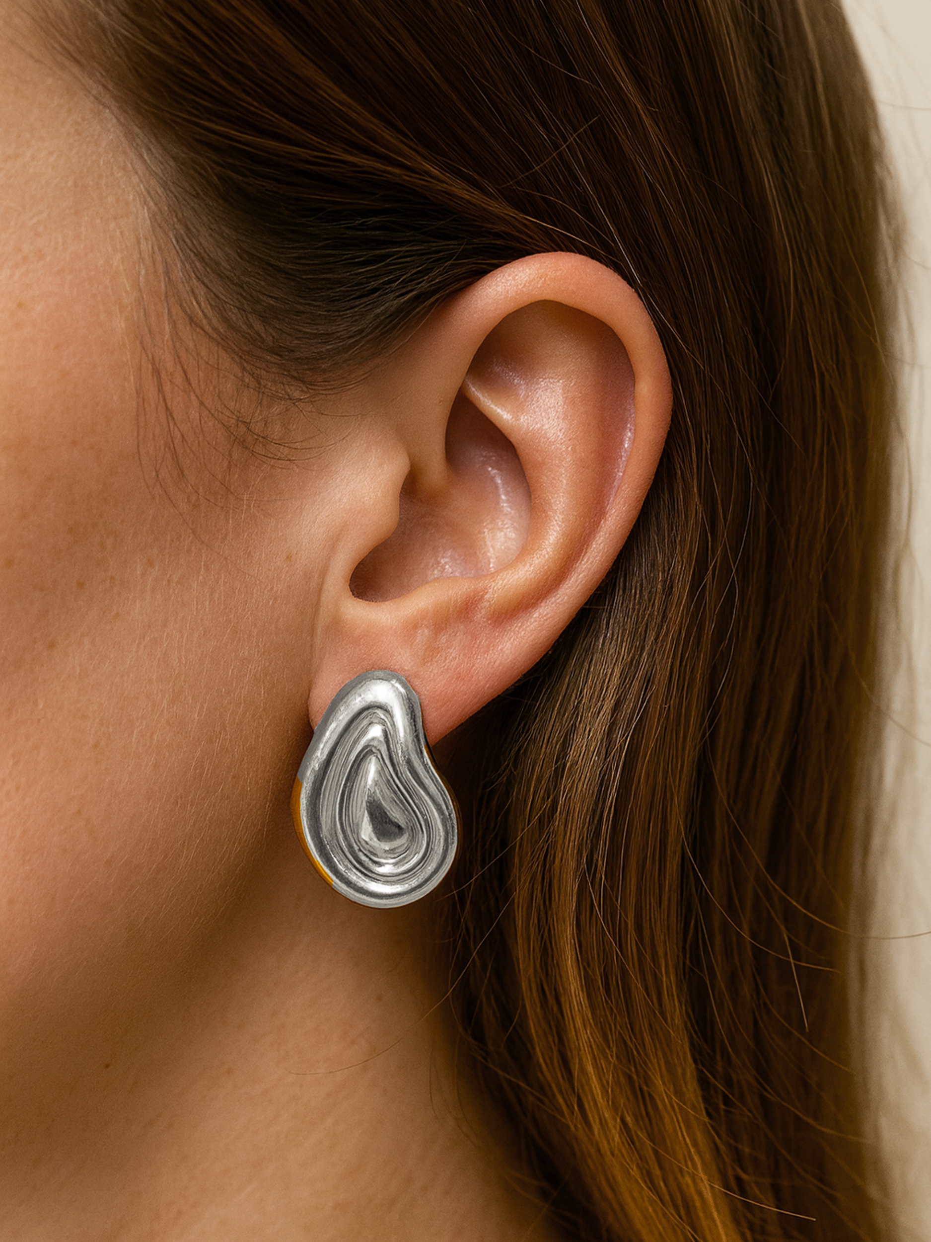 Bold and sculptural, the Elsa Earrings embrace fluid form and understated sophistication. Crafted in sterling silver, their organic, ripple-like contours evoke the natural flow of molten metal — a study in movement and modern artistry. The smooth, mirror-finish surface captures light beautifully, adding depth and dimension to the design. Striking yet minimal, the Elsa Earrings are a statement of refined confidence, perfect for both day-to-night wear.