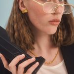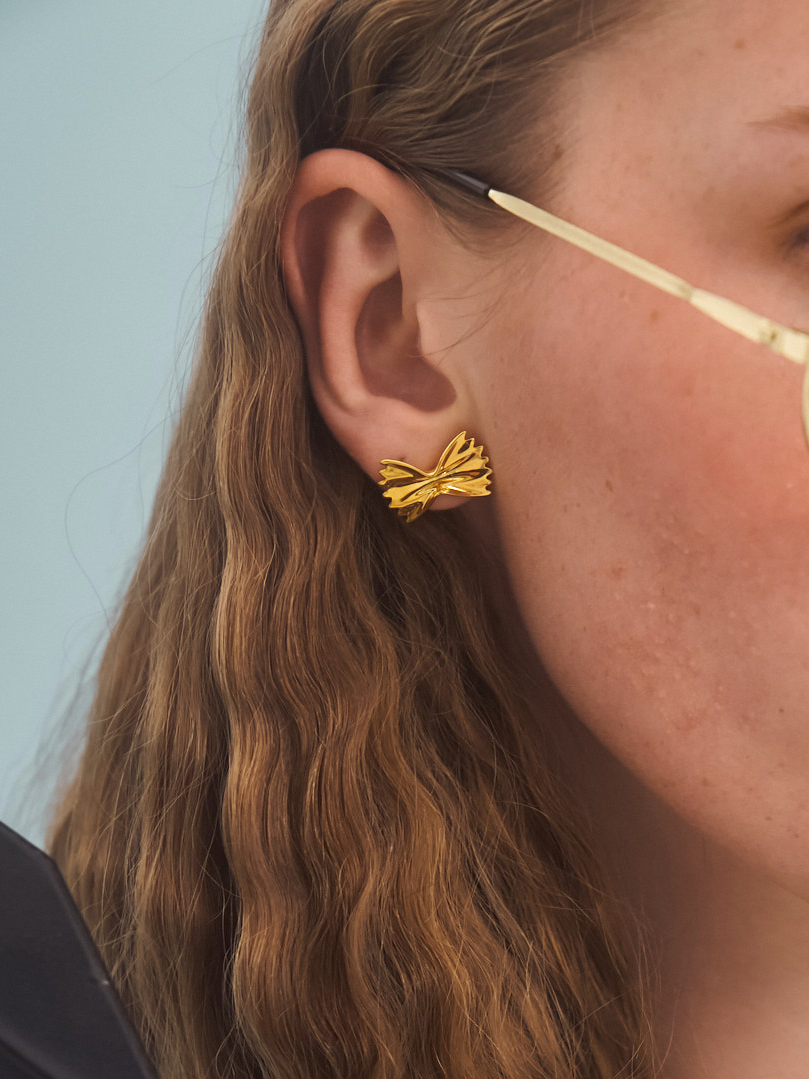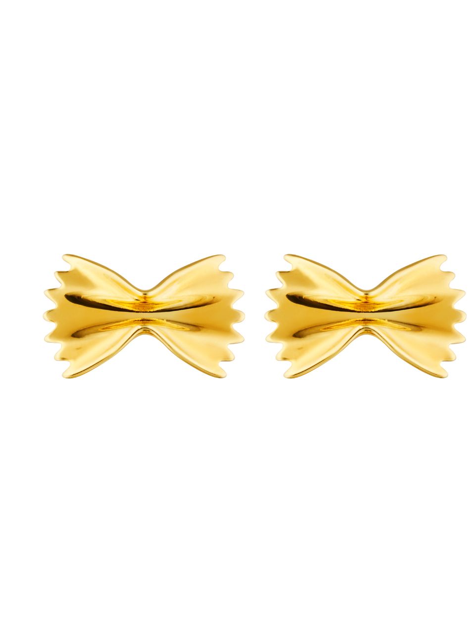 The Farfalle Earrings are a playful and bold homage to the iconic bow-tie pasta shape, crafted in polished gold for a chic, sculptural look. Their distinctive silhouette adds a fun yet elegant touch to any outfit.