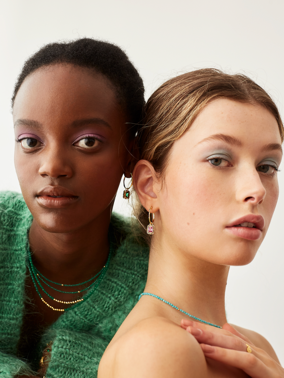 A decadent bezel-set emerald charm with a choice of hoop. Wear with or without their statement charm, it's two-in-one!