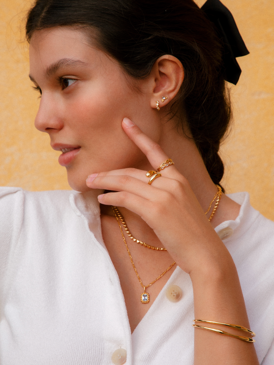 Avoid oils and detergents, we suggest removing when exercising, in saunas and hot baths. Casual exposure to water is suitable but we suggest cleaning after each use. Clean your plated jewellery with a dry cotton ball or a soft cloth to remove any dust and dirt it has acquired and store in its original packaging.