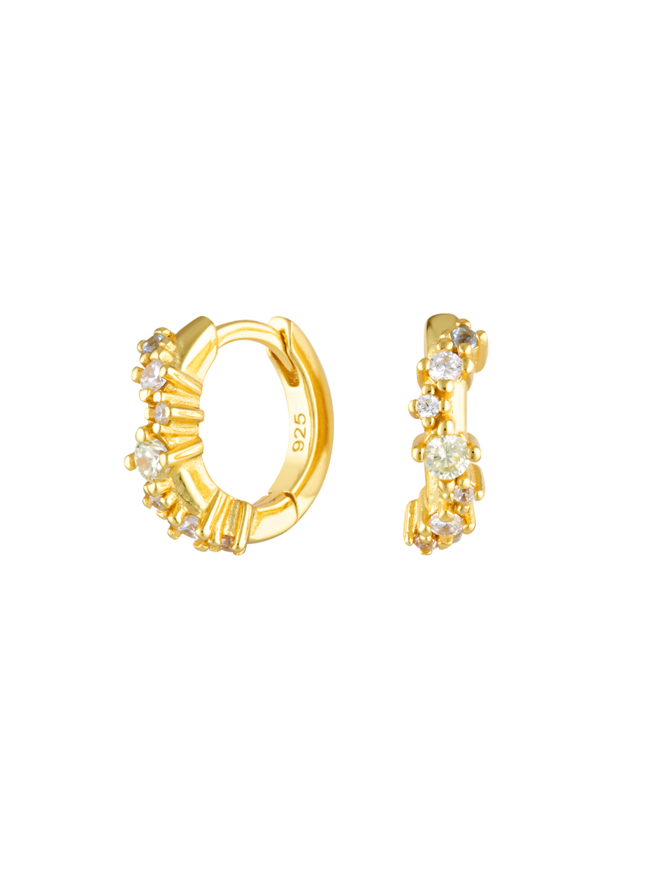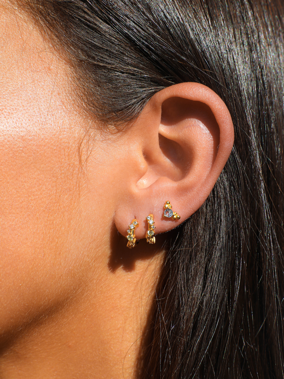 The Jemima Huggies feature a formation of seven pastel gemstones. With fine detailing, these are perfect for creating a subtle ear stack for everyday.