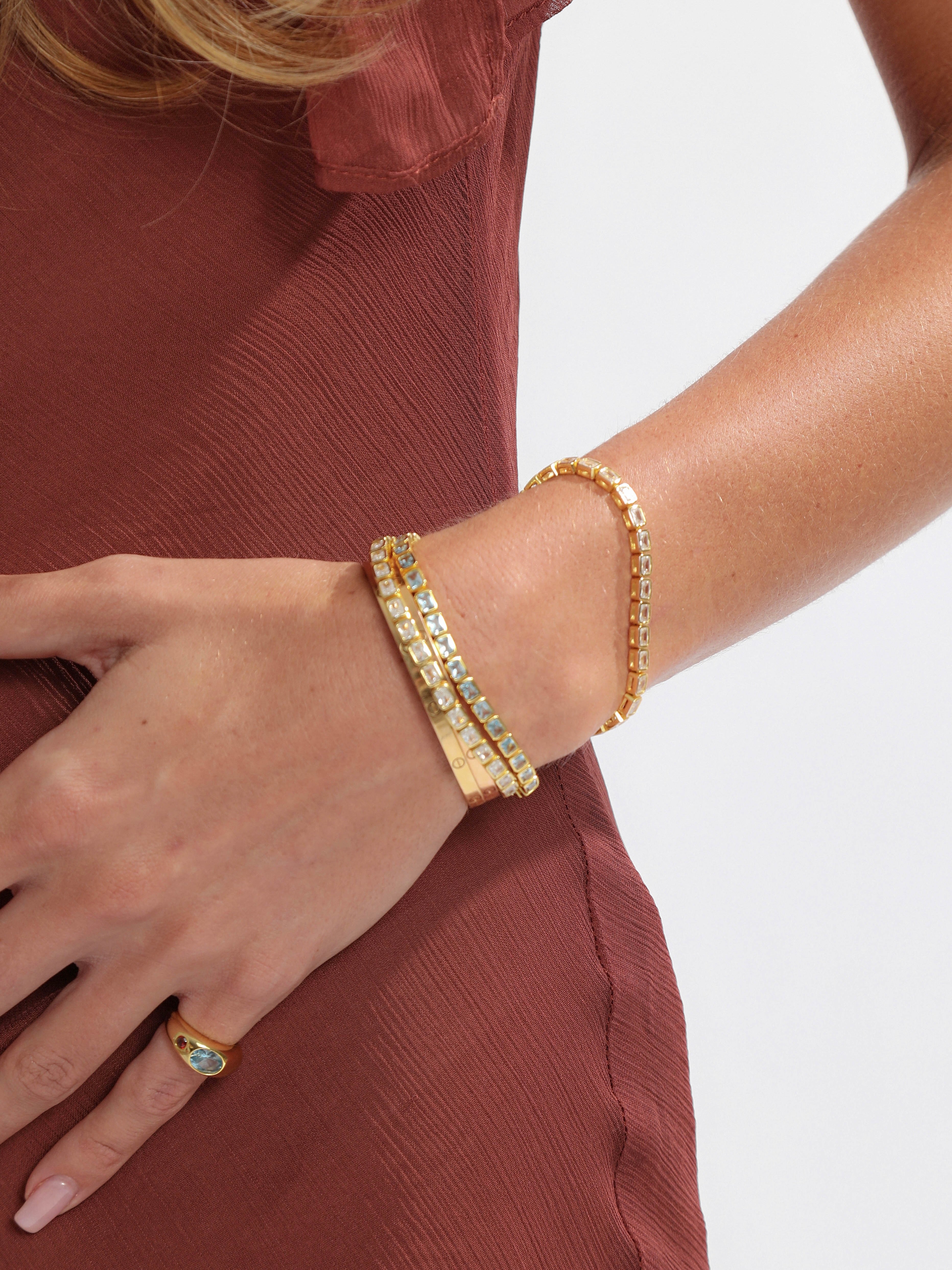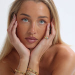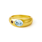 The Sammy x Avant Studio Katie Ring is named after Sammy's sister, Kate. The Katie Ring is designed as a pinky ring and was inspired when we designed the Bambi Hoops as a matching piece. Featuring a dome shape with an oval-cut aquamarine next to a round-cut garnet, the stones are set off-centre. Katie's rounded silhouette and contrasting stones make it a standout piece perfect for making a subtle statement with a hint of colour. Katie comes in 3 smaller sizes making it the perfect pinky ring.