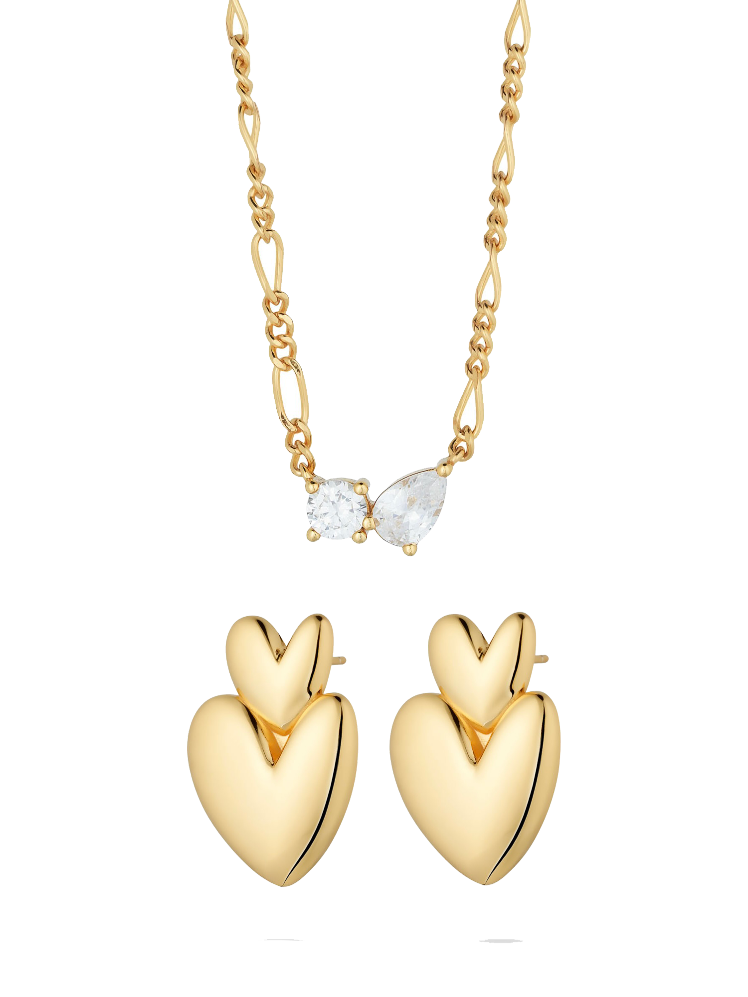 The Vivienne Earrings Gold are reminiscent of those worn in the 1980's. Featuring two organically formed hearts melded together.