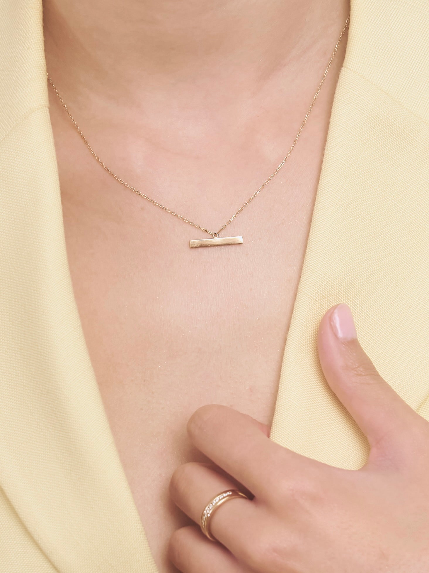 Minimalist and timeless, the Nora Necklace by Avant Studio is an elevated essential designed for everyday wear. Handcrafted in solid 14K yellow gold, this refined piece features a polished bar pendant, suspended from a delicate chain for a sleek and modern finish.