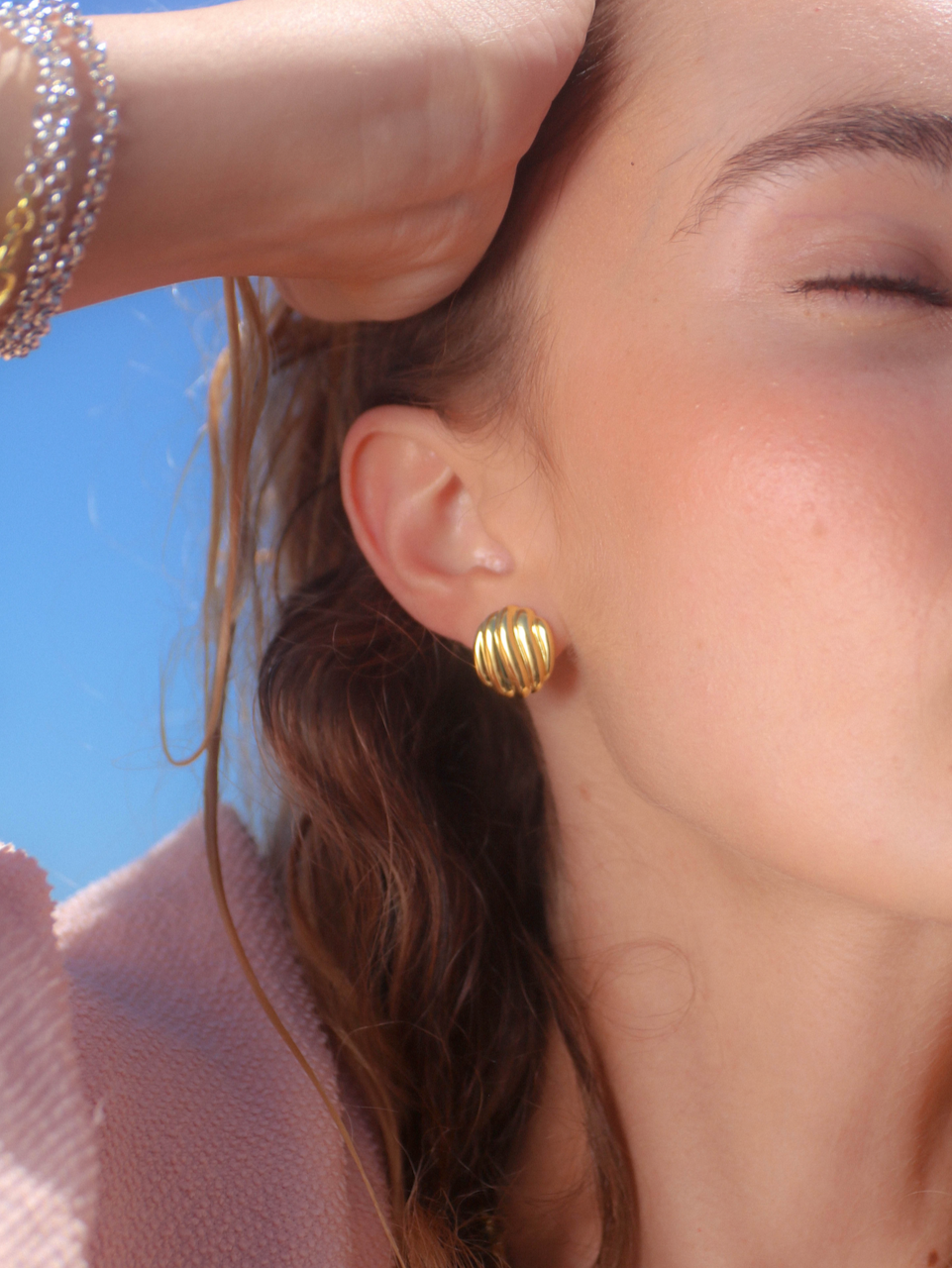 The Paulina Earrings are striking, gold statement pieces featuring a bold, sculptural design. Their unique, woven shape adds dimension and elegance, making them a perfect accessory for both everyday wear and special occasions.