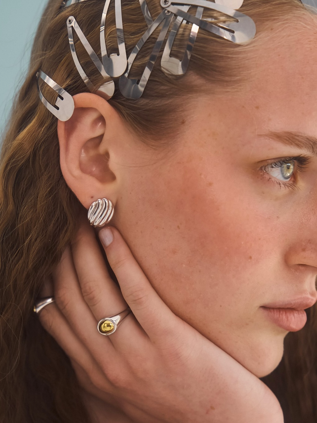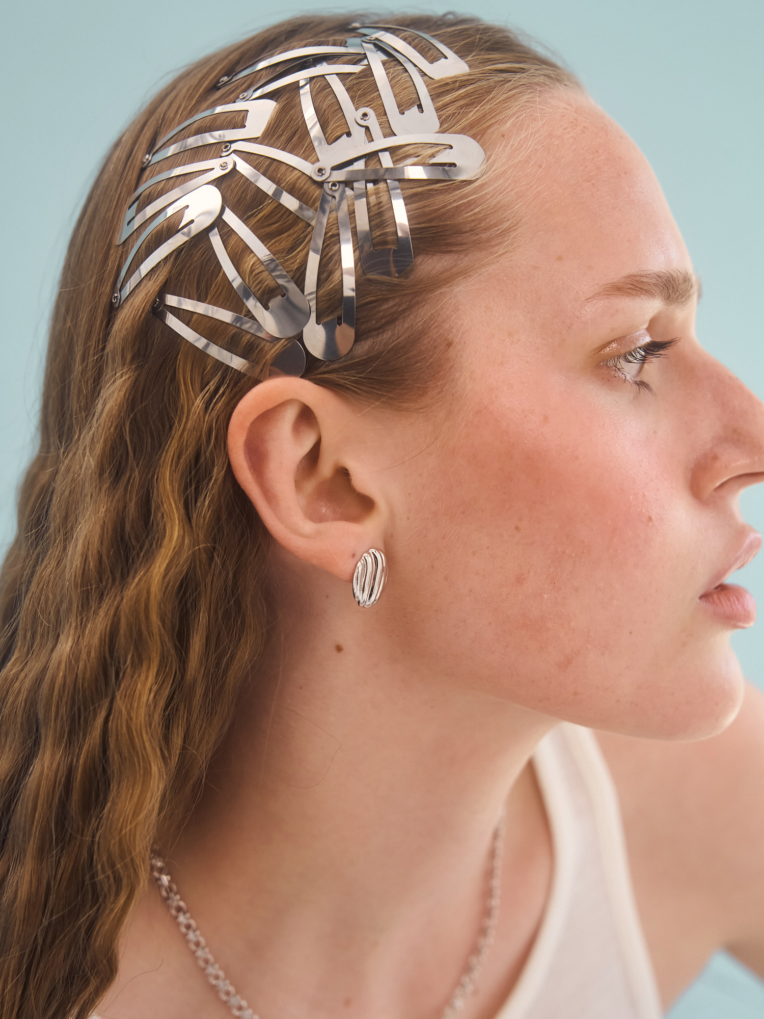 The Paulina Earrings are striking, silver statement pieces featuring a bold, sculptural design. Their unique, woven shape adds dimension and elegance, making them a perfect accessory for both everyday wear and special occasions.
