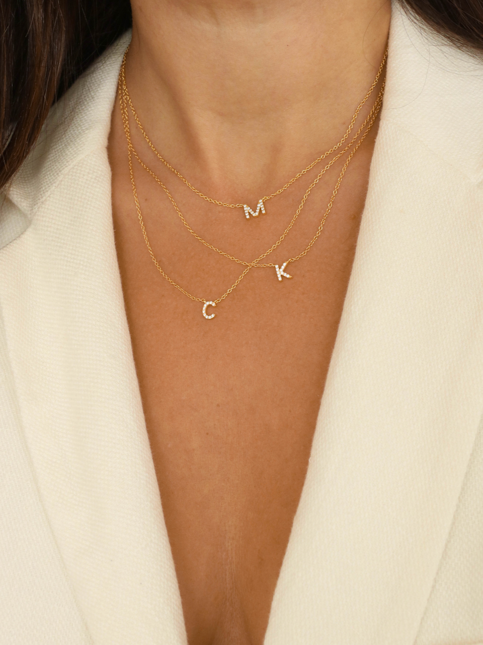 Make an undoubtedly personal gesture with our new Pavé Letter Necklace. A piece that can be part of your daily ritual, the kind you don't take off. The type of piece that says something about you - literally.