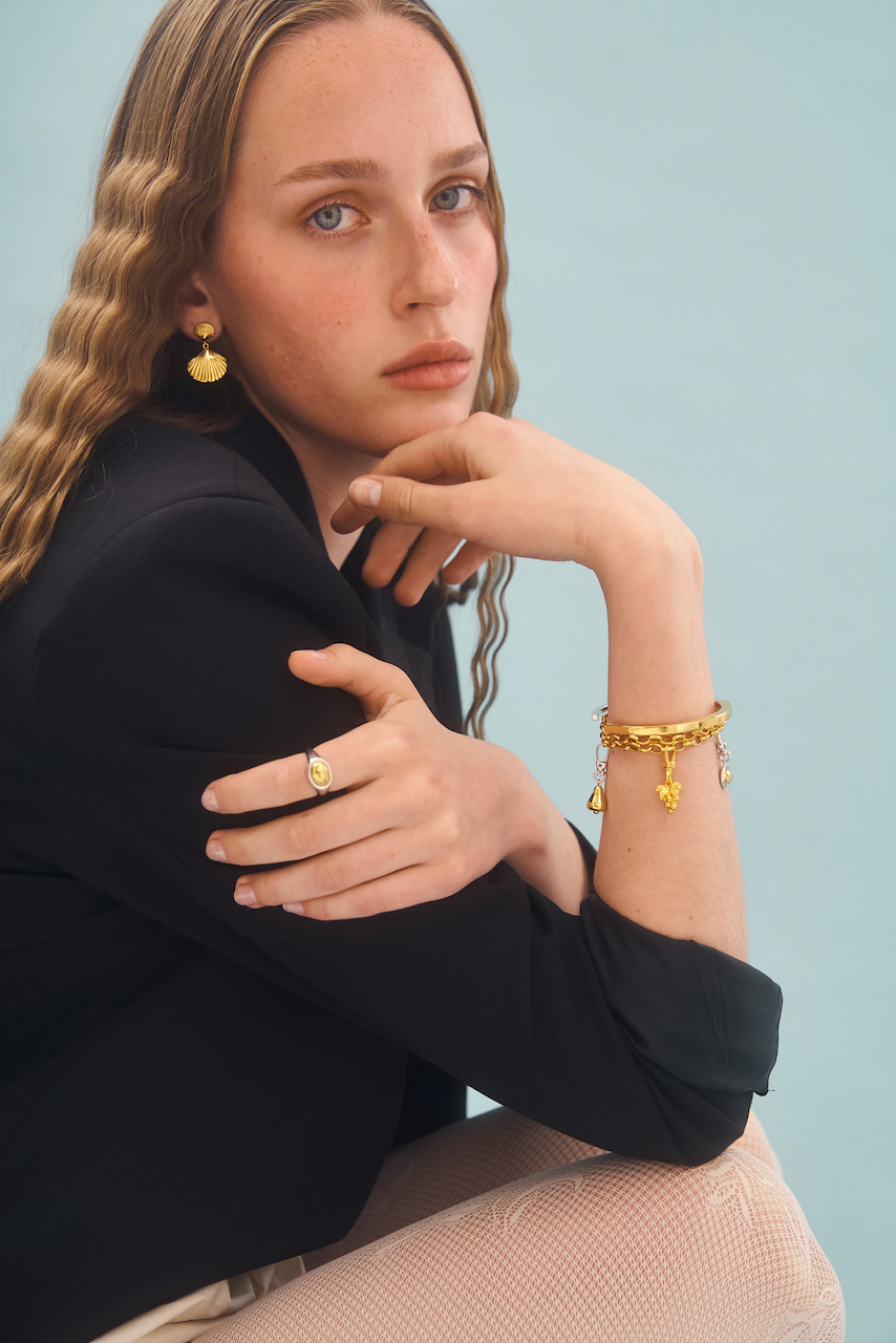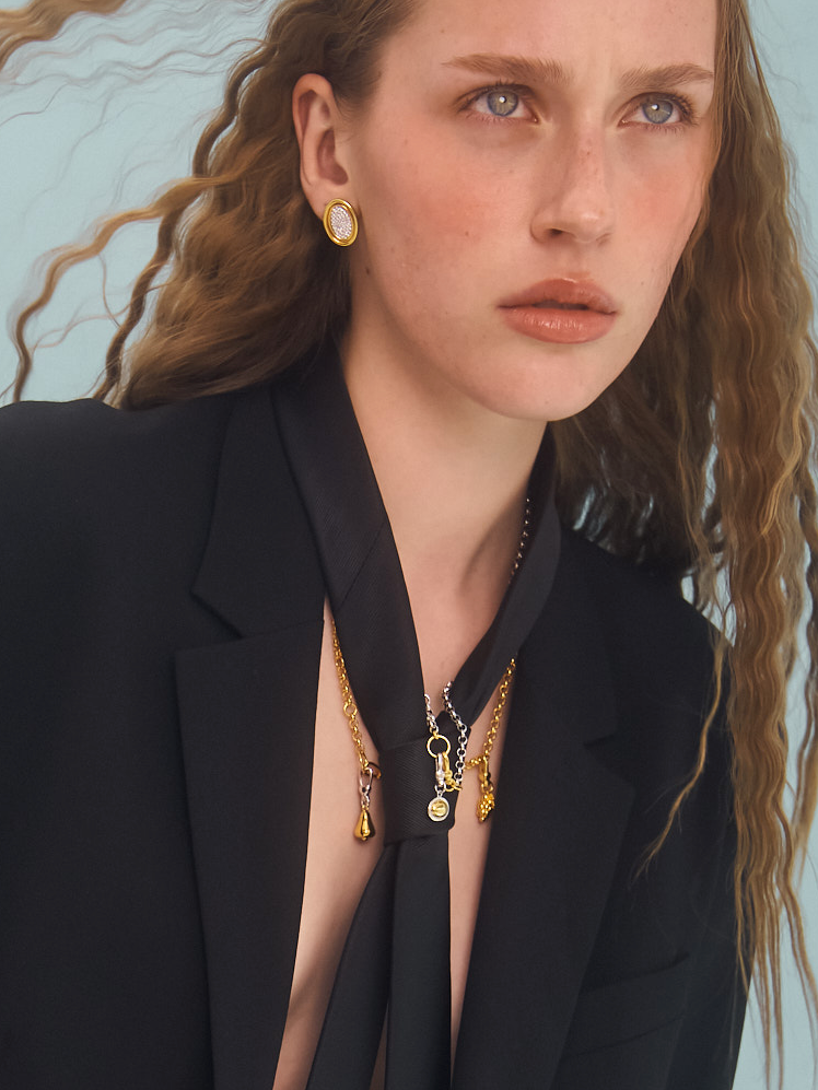 The Pera Pendant is a charming, pear-shaped accessory featuring a sleek, polished gold finish that adds a touch of warmth. Suspended from a sterling silver clasp, this two-tone design allows it to seamlessly pair with other jewellery pieces, offering versatility and elegance