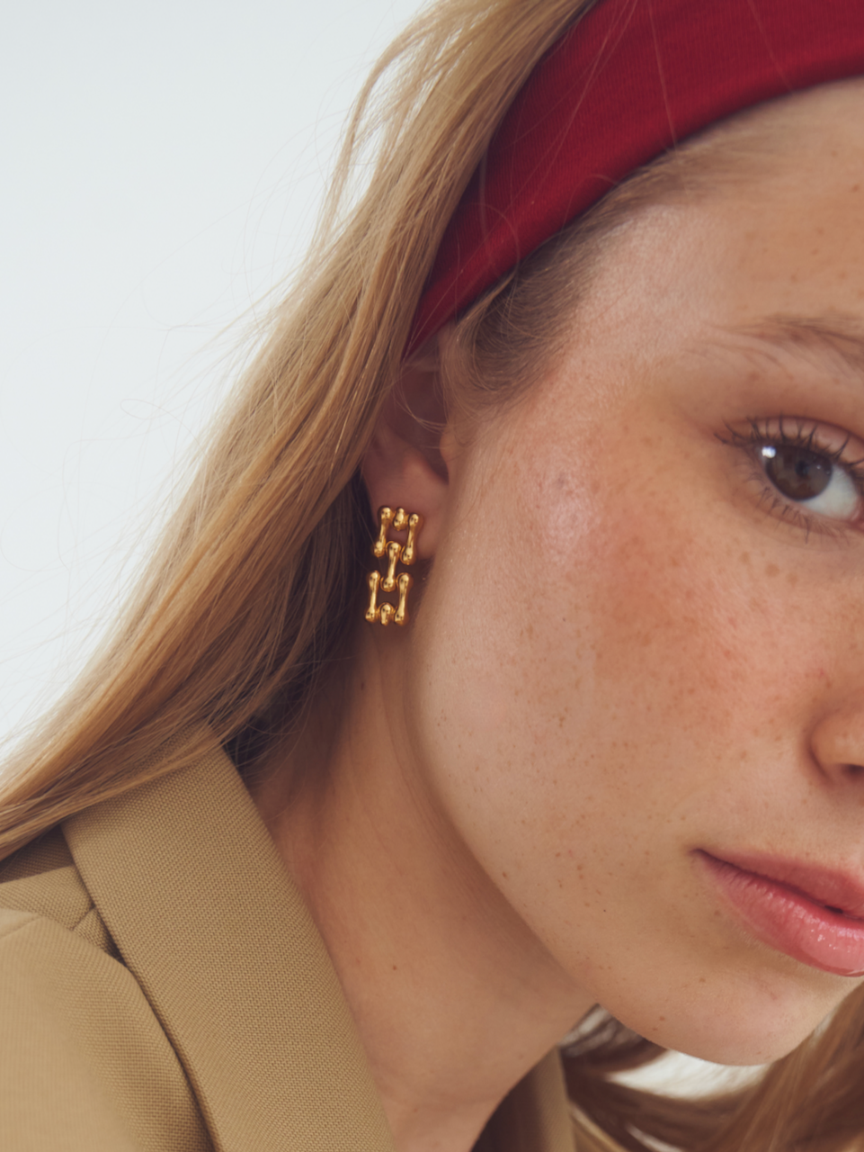 The Persephone Earrings Gold are named after the goddess of Spring. These 'chain' design earrings are also inspired by the bold jewellery of the 1980's.