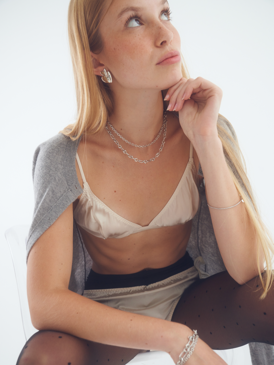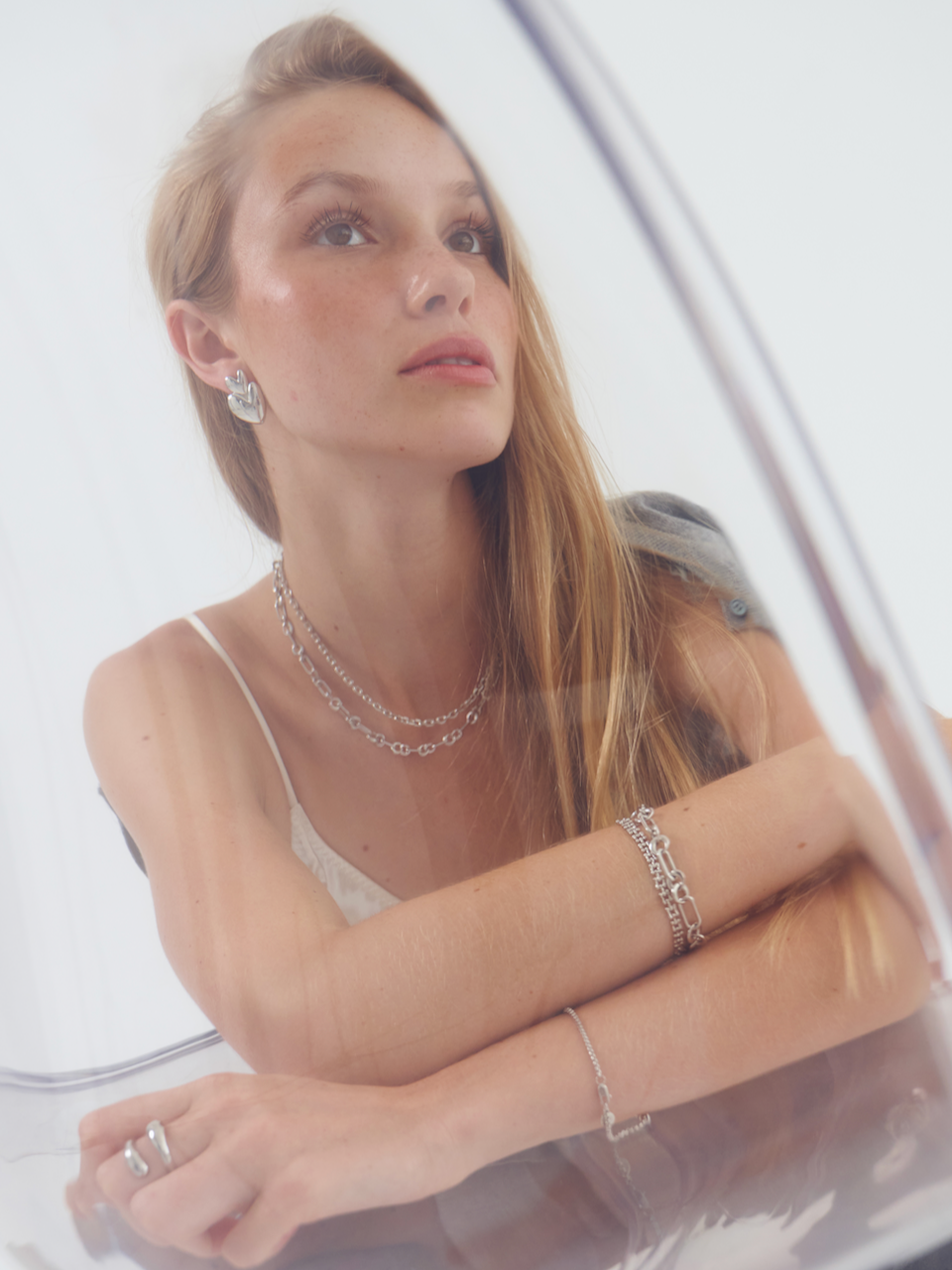 The Serafina Necklace Silver is a larger link and ring style chain, perfect for layering or wearing on its own.