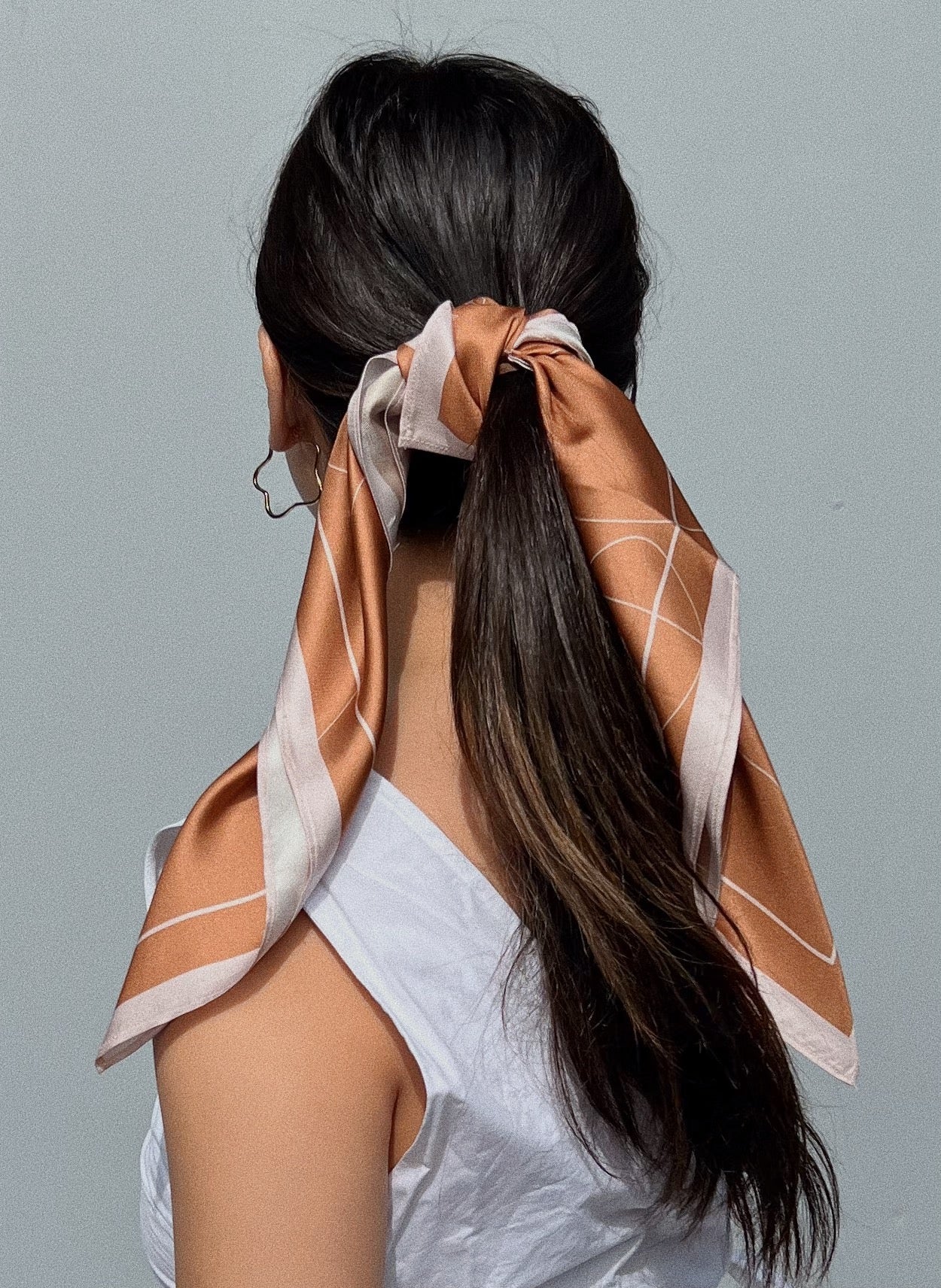 Texturised silk twill for your hair, neck, shoulders and handbags alike.