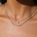 Add some sparkle to your everyday. A dainty Cubic Zirconia crystal pendant featuring three stones and suspended on a fine chain.