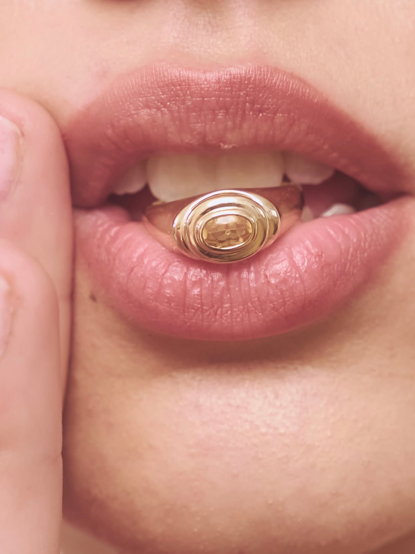 With its sculptural silhouette and smooth, polished finish, the Tattiana Ring strikes the perfect balance between statement and sophistication. The warm citrine—often called the “stone of abundance”—brings a touch of vibrancy and optimism, while the refined gold setting ensures enduring elegance.