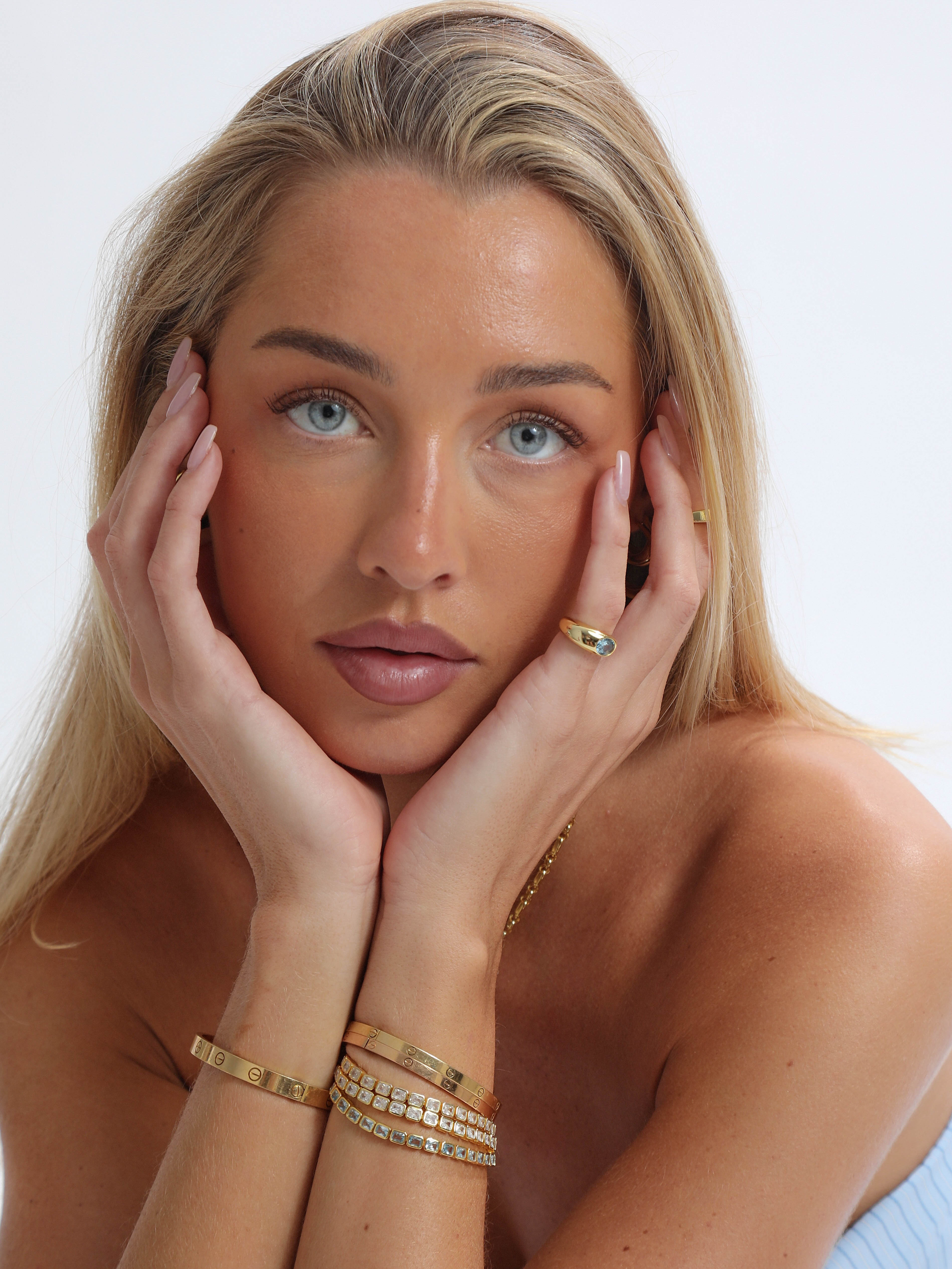 Avoid oils and detergents, we suggest removing when exercising, in saunas and hot baths. Casual exposure to water is suitable but we suggest cleaning after each use. Clean your plated jewellery with a dry cotton ball or a soft cloth to remove any dust and dirt it has acquired and store in its original packaging.