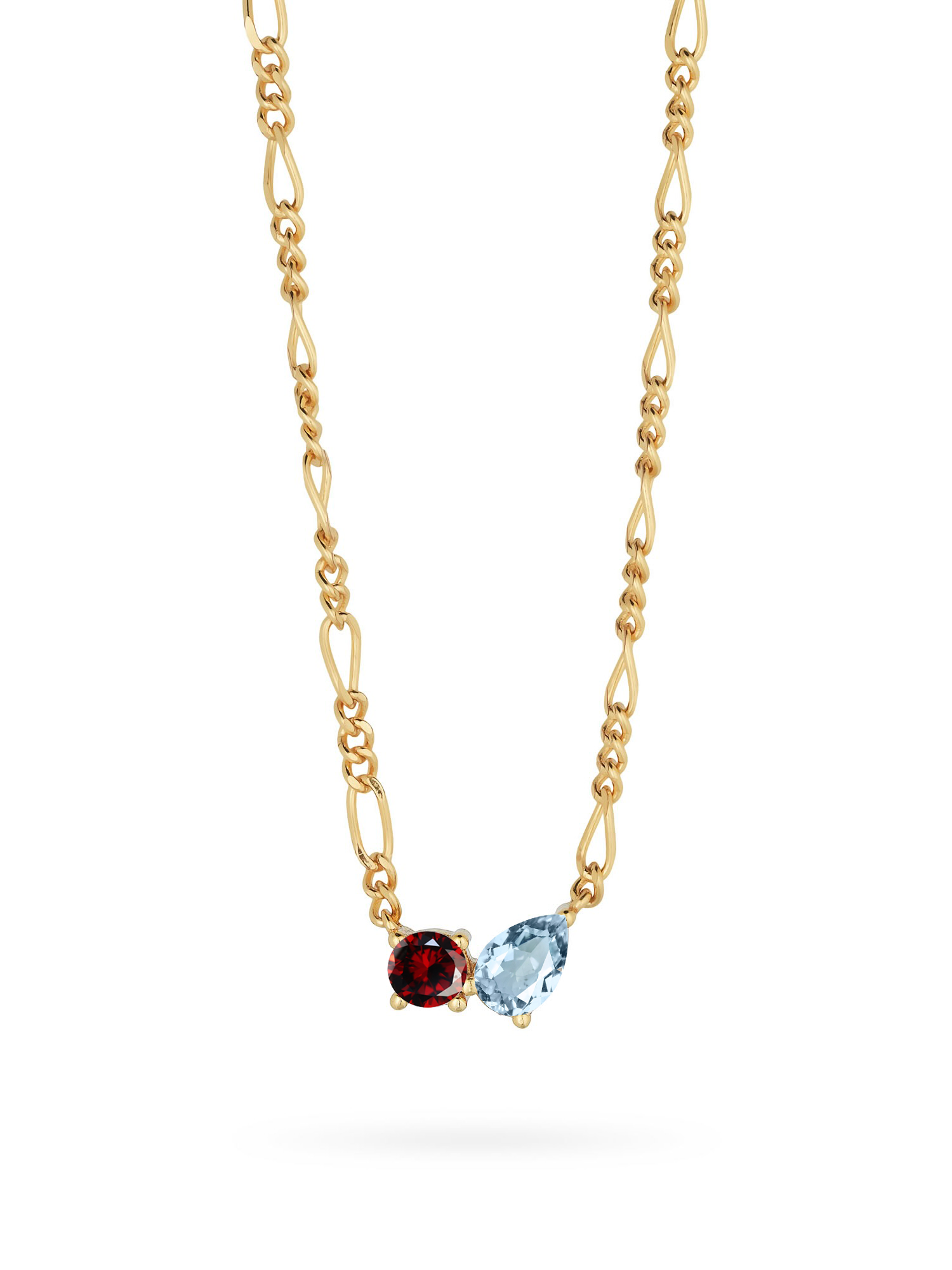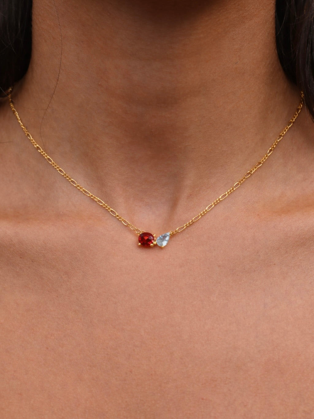TWIN FLAME NECKLACE AQUAMARINE GARNET